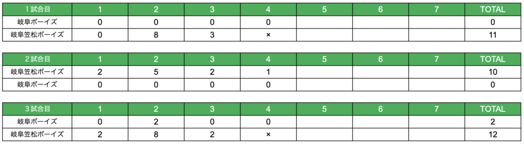 岐阜ボーイズの皆様、練習試合ありがとうございました。今後ともよろしくお願いいたします。